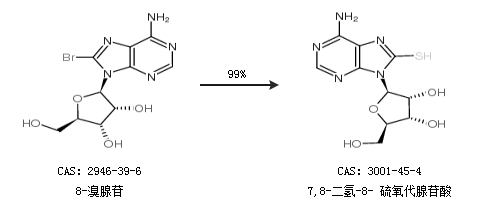 1.通過8-溴腺苷合成7,8-二氫-8- 硫氧代腺苷酸,收率約99%;