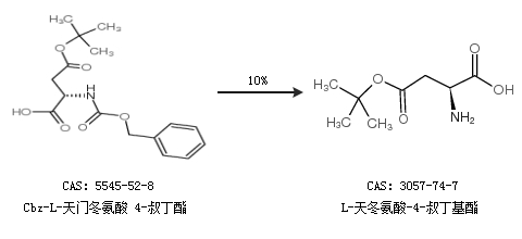 1.通過(guò)Cbz-L-天門冬氨酸 4-叔丁酯合成L-天冬氨酸-4-叔丁基酯,收率約10%;