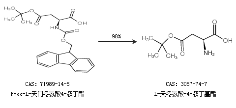 2.通過(guò)Fmoc-L-天門冬氨酸4-叔丁酯合成L-天冬氨酸-4-叔丁基酯,收率約98%;