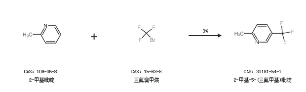 2.通過2-甲基吡啶和三氟溴甲烷合成2-甲基-5-(三氟甲基)吡啶,收率約3%;
