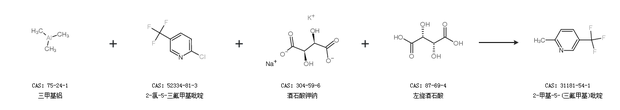 1.通過三甲基鋁、2-氯-5-三氟甲基吡啶、酒石酸鉀鈉和左旋酒石酸合成2-甲基-5-(三氟甲基)吡啶