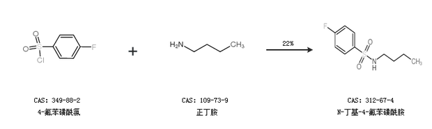 1.通過4-氟苯磺酰氯和正丁胺合成N-丁基-4-氟苯磺酰胺,收率約22%;