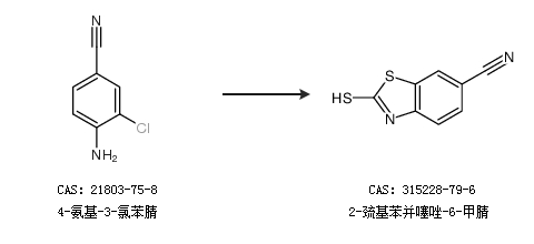 2.通過4-氨基-3-氯苯腈合成2-巰基苯并噻唑-6-甲腈