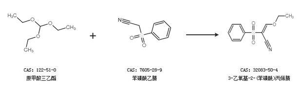 1.通過(guò)原甲酸三乙酯和苯磺酰乙腈合成3-乙氧基-2-(苯磺酰)丙烯腈