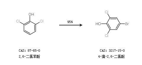 1.通過2,6-二氯苯酚合成4-溴-2,6-二氯酚,收率約95%;