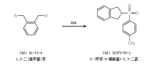 2.通過(guò)1,2-二(溴甲基)苯合成2-(甲苯-4-磺酰基)-2,3-二氫-1H-異吲哚,收率約99%;