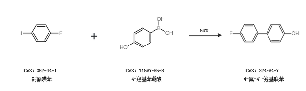 1.通過(guò)對(duì)氟碘苯和4-羥基苯硼酸合成4-氟-4''-羥基聯(lián)苯,收率約54%;