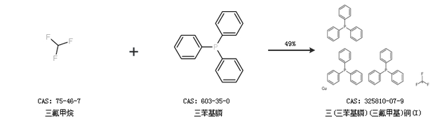 1.通過三氟甲烷和三苯基膦合成三(三苯基膦)(三氟甲基)銅(I),收率約49%;