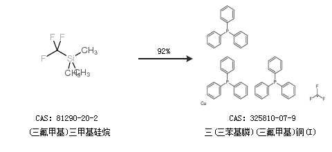 2.通過(三氟甲基)三甲基硅烷合成三(三苯基膦)(三氟甲基)銅(I),收率約92%;