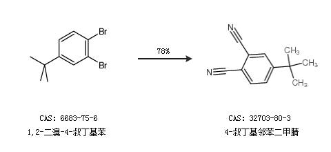 2.通過1,2-二溴-4-叔丁基苯合成4-叔丁基鄰苯二甲腈,收率約78%;