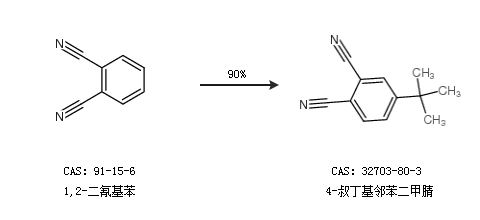 1.通過1,2-二氰基苯合成4-叔丁基鄰苯二甲腈,收率約90%;