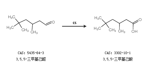 1.通過(guò)3,5,5-三甲基己醛合成3,5,5-三甲基己酸,收率約99%;