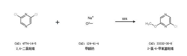 2.通過2,6-二氯吡嗪和甲醇鈉合成2-氯-6-甲氧基吡嗪,收率約66%;