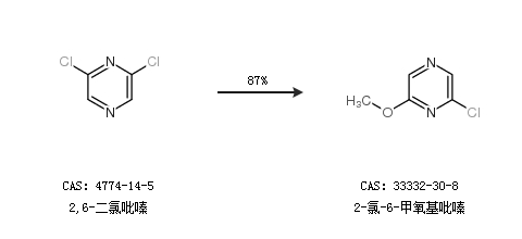 1.通過2,6-二氯吡嗪合成2-氯-6-甲氧基吡嗪,收率約87%;