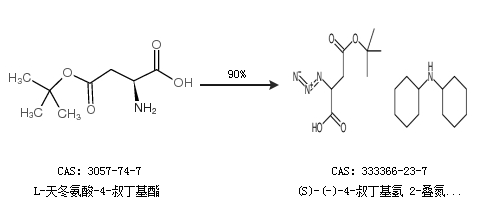 1.通過L-天冬氨酸-4-叔丁基酯合成(S)-(-)-4-叔丁基氫 2-疊氮基琥珀酸酯 二環(huán)己基銨鹽,收率約90%;
