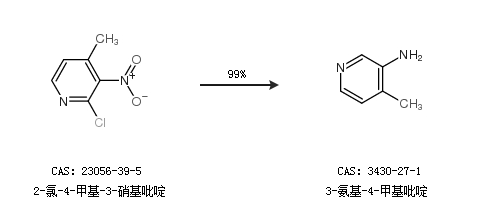 1.通過(guò)2-氯-4-甲基-3-硝基吡啶合成3-氨基-4-甲基吡啶,收率約99%;