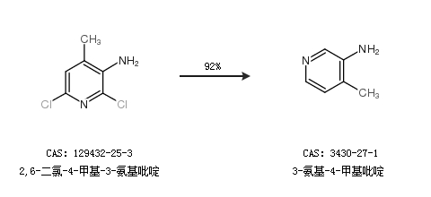 2.通過(guò)2,6-二氯-4-甲基-3-氨基吡啶合成3-氨基-4-甲基吡啶,收率約92%;