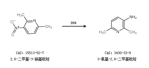 1.通過2,6-二甲基-3-硝基吡啶合成3-氨基-2,6-二甲基吡啶,收率約99%;