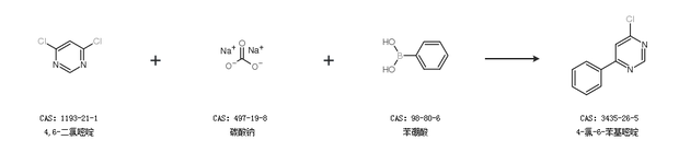 1.通過4,6-二氯嘧啶和苯硼酸合成4-氯-6-苯基嘧啶,收率約51%;
