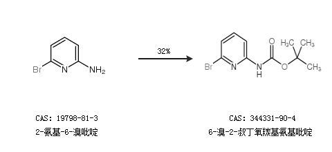 2.通過2-氨基-6-溴吡啶合成6-溴-2-叔丁氧羰基氨基吡啶,收率約32%;