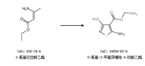 1.通過3-氨基巴豆酸乙酯合成5-氨基-3-甲基異噻唑-4-羧酸乙酯