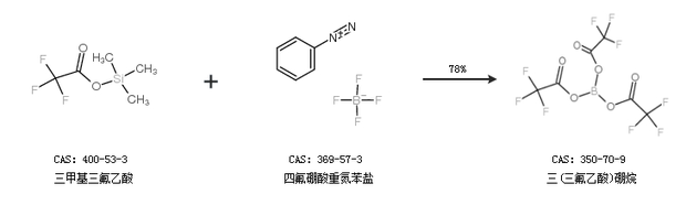 2.通過三甲基三氟乙酸和四氟硼酸重氮苯鹽合成三(三氟乙酸)硼烷,收率約78%;