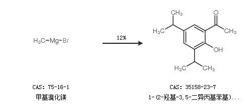 1.通過(guò)甲基溴化鎂合成1-(2-羥基-3,5-二異丙基苯基)乙酮,收率約12%;