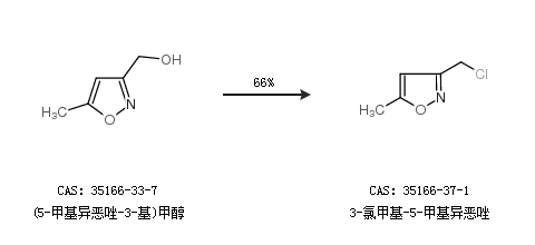 1.通過(guò)(5-甲基異惡唑-3-基)甲醇合成3-氯甲基-5-甲基異惡唑,收率約66%;