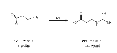 2.通過β-丙氨酸合成beta-丙酸胍,收率約49%;