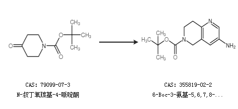1.通過N-叔丁氧羰基-4-哌啶酮合成6-Boc-3-氨基-5,6,7,8-四氫-[1,6]萘啶