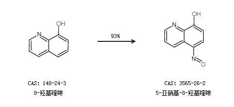 1.通過8-羥基喹啉合成5-亞硝基-8-羥基喹啉,收率約93%;