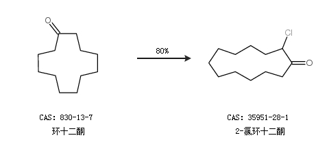 2.通過環(huán)十二酮合成2-氯環(huán)十二酮,收率約80%;