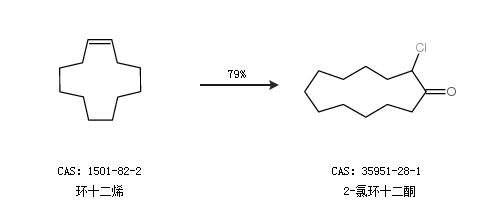 1.通過環(huán)十二烯合成2-氯環(huán)十二酮,收率約79%;