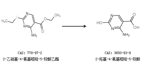 2.通過(guò)2-乙硫基-4-氨基嘧啶-5-羧酸乙酯合成2-羥基-4-氨基嘧啶-5-羧酸
