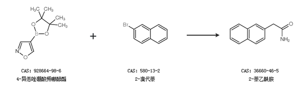 1.通過4-異惡唑硼酸頻哪醇酯和2-溴代萘合成2-萘乙酰胺