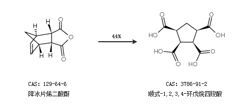 1.通過降冰片烯二酸酐合成順式-1,2,3,4-環(huán)戊烷四羧酸,收率約44%;