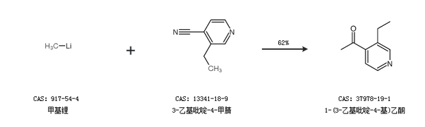 1.通過甲基鋰和3-乙基吡啶-4-甲腈合成1-(3-乙基吡啶-4-基)乙酮,收率約62%;