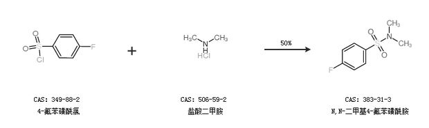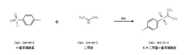 1.通過(guò)4-氟苯磺酰氯和二甲胺合成N,N-二甲基4-氟苯磺酰胺,收率約98%;