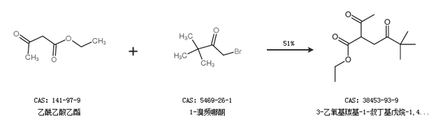 1.通過乙酰乙酸乙酯和1-溴頻哪酮合成3-乙氧基羰基-1-叔丁基戊烷-1,4-二酮,收率約51%;