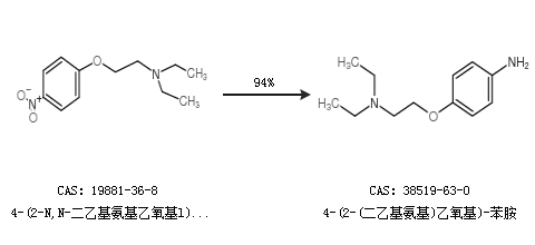 1.通過4-(2-N,N-二乙基氨基乙氧基l)-1-硝基苯合成4-(2-(二乙基氨基)乙氧基)-苯胺,收率約94%;