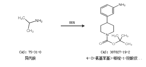 1.通過異丙胺合成4-(3-氨基苯基)-哌啶-1-羧酸叔丁酯,收率約86%;