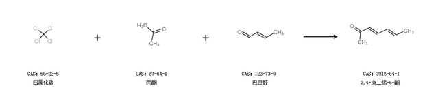 2.通過四氯化碳、丙酮和巴豆醛合成2,4-庚二烯-6-酮