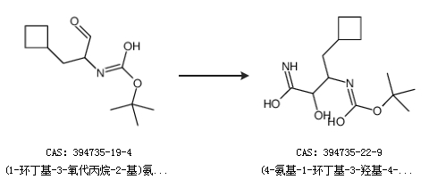 2.通過(1-環(huán)丁基-3-氧代丙烷-2-基)氨基甲酸叔丁酯合成(4-氨基-1-環(huán)丁基-3-羥基-4-氧代-2-丁基)氨基甲酸叔丁酯