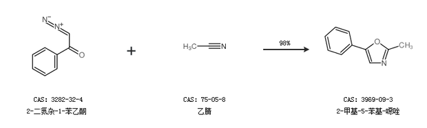 1.通過2-二氮雜-1-苯乙酮和乙腈合成2-甲基-5-苯基-噁唑,收率約98%;