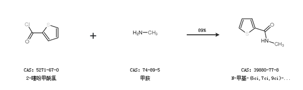 2.通過2-噻吩甲酰氯和甲胺合成N-甲基-(6ci,7ci,9ci)-2-噻吩羧酰胺,收率約89%;