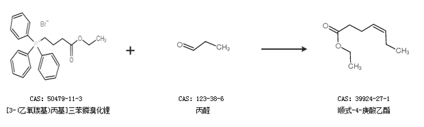 2.通過(guò)[3-(乙氧羰基)丙基]三苯鏻溴化鋰和丙醛合成順式-4-庚酸乙酯