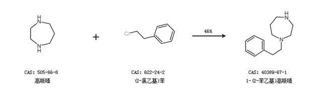 1.通過高哌嗪和(2-氯乙基)苯合成1-(2-苯乙基)高哌嗪,收率約46%;