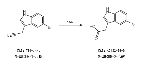 1.通過5-溴吲哚-3-乙腈合成5-溴吲哚-3-乙酸,收率約95%;