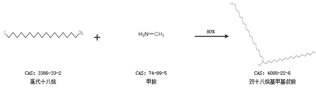 1.通過氯代十八烷和甲胺合成雙十八烷基甲基叔胺,收率約80%;