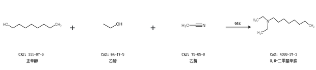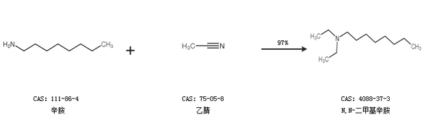 1.通過辛胺和乙腈合成N,N-二甲基辛胺,收率約97%;
